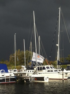 Dus: weinig uren gemaakt als geheel & één jongen die eigenlijk nog nooit echt op een maxfun gevaren had, dat zou wat worden. Op zaterdag blijken er in der daad een aantal dingen beter te kunnen: de startjes lopen niet lekker en we verliezen ook meters op de gennaker handeling. De Jib lijkt zichzelf wel degelijk terug te betalen, we pakken een behoorlijk stuk meer hoogte dan voorheen. Het scheelt weinig meer. Naar de omstandigheden gaat het zelfs eigenlijk nog best aardig, doordat Ivo blauw aanloop -hij blijkt na der hand 39 graden koorts te hebben- varen we de boot effectief met drie man!